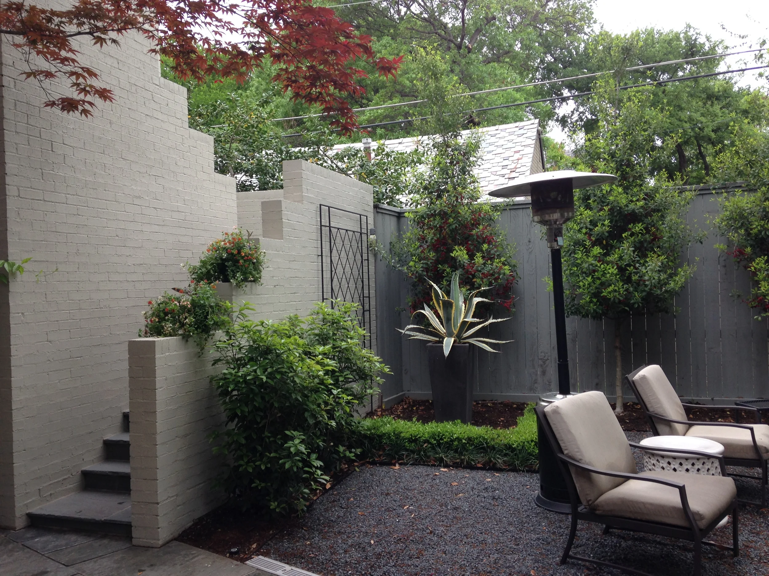 Park  Plaza Condo. New home for a Dallas area designer. This was a complete re-do of the garden.